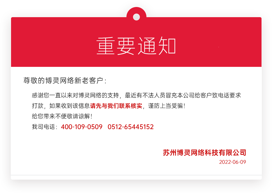 蘇州博靈網(wǎng)絡(luò),重要通知如下。